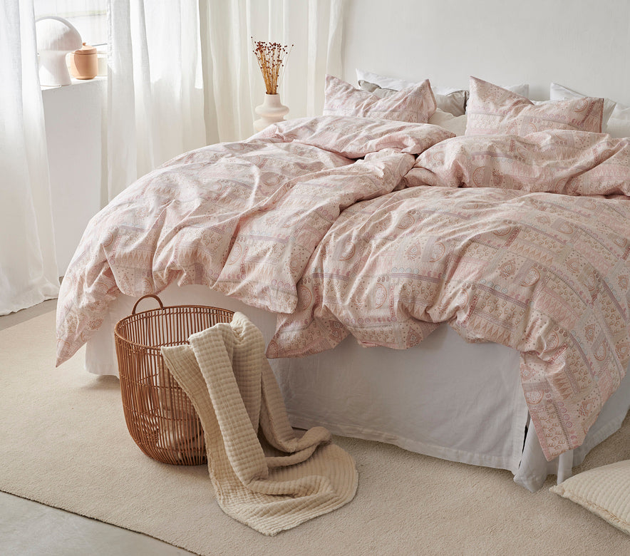 Bäddset bestående av ett örngott och ett påslakan. Bäddsetet har ett tryckt mönster och är tillverkat i mjuk och skön bomullskvalitet. Borganäs bäddset finns i flera olika mönster för både enkel- och dubbelsäng.