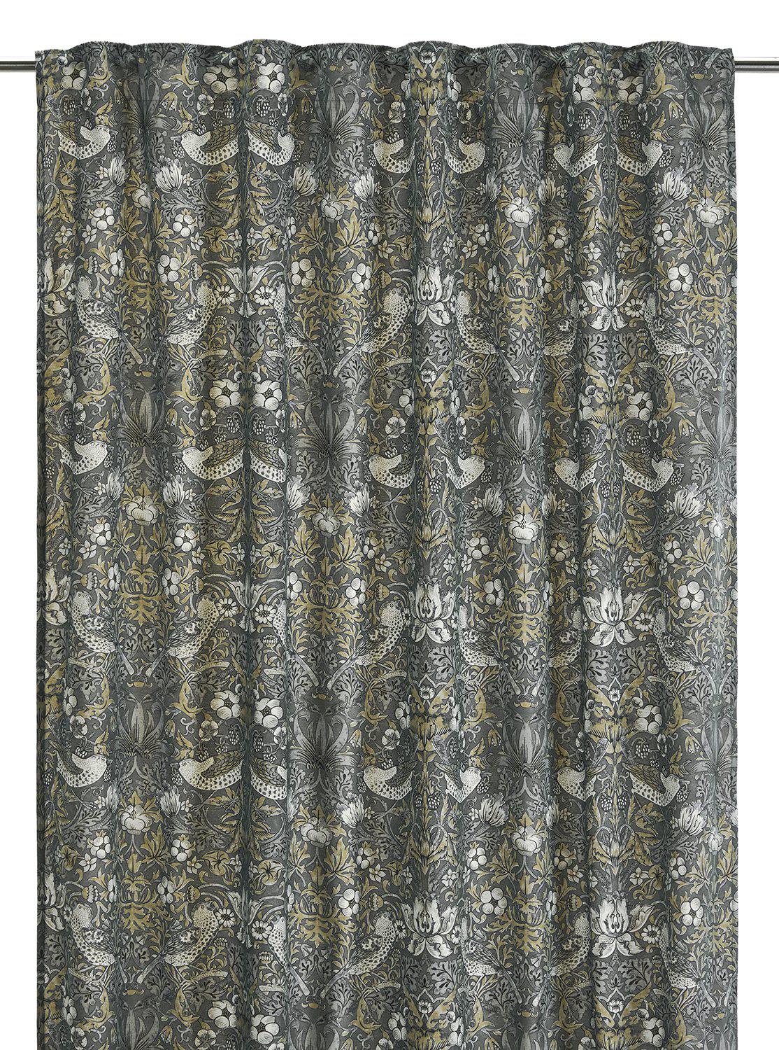 Klassisskt mönsterbild som för tankarna till den engelska traditionen. Tryckt på ett mjukt tyg med bomullskänsla med tungt fall. 2-pack multibandslängder med tryckt mönster. Multibandet är en flexibel lösning som gör att gardinen kan hängas upp antingen med fingerkrokar, räkor eller direkt på en stång beroende på vilken typ av veck och vilket fall du vill ha på gardinen. Använd snabbfållningsband för att få önskad längd på gardinen. Måttet på varje gardin är 130x250cm.